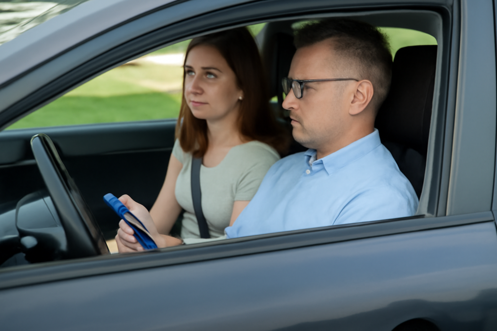 The examiner will be seated in the passenger seat next to you during the road test. Their job is to observe how you drive, assess your ability to handle the car, and make sure you’re following all traffic laws. They won’t interact much during the test, but they will give you directions and let you know if you need to make any adjustments.